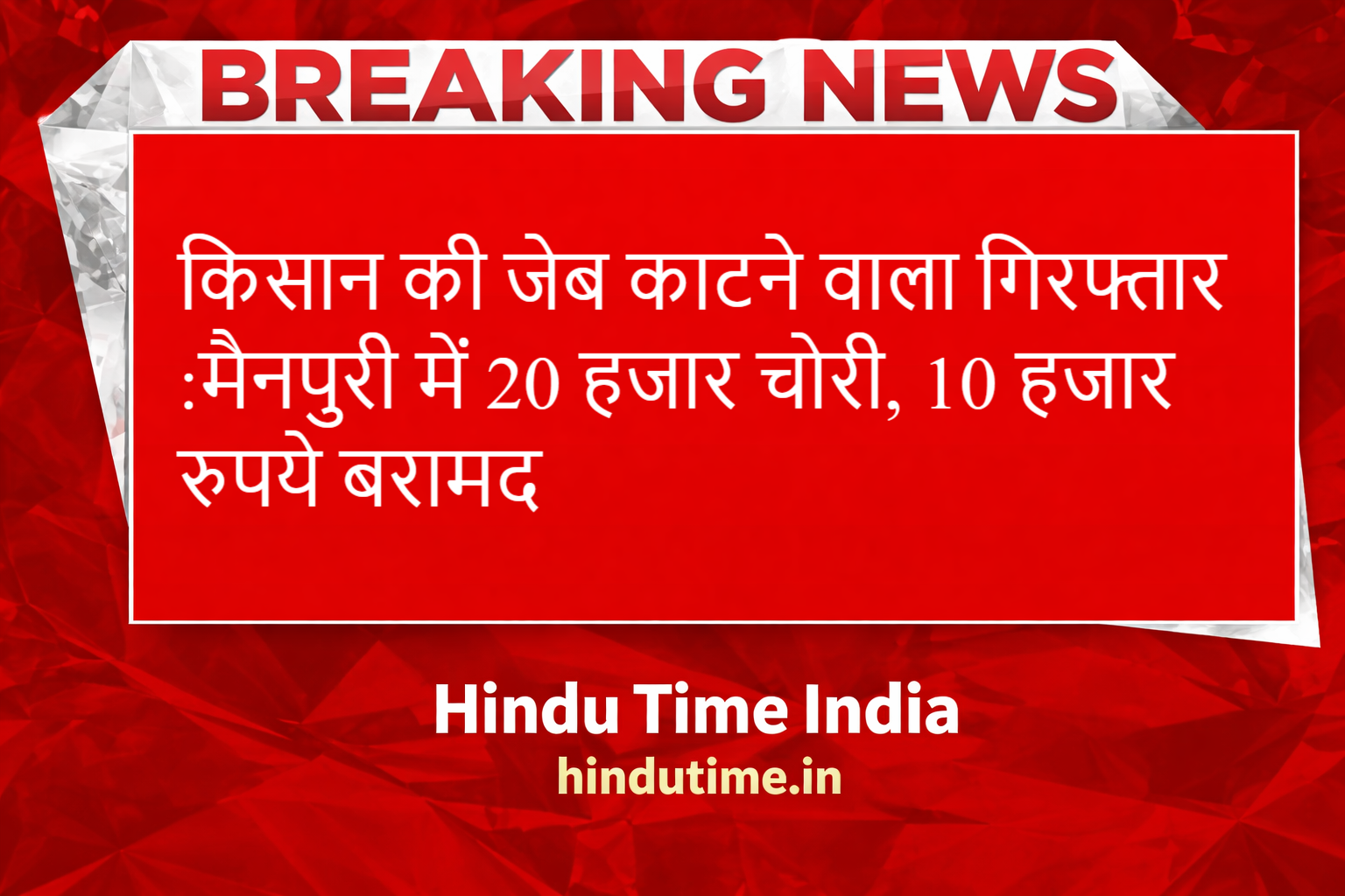 मैनपुरी में पुलिस ने किसान की जेब काटकर पैसे उड़ाने वाले आरोपी को गिरफ्तार कर बड़ी सफलता हासिल की है। इस कार्रवाई में चोरी की गई रकम में से 10 हजार रुपये भी बरामद किए गए हैं, जबकि वारदात में कुल 20 हजार रुपये लूटे गए थे।,20 हजार चोरी