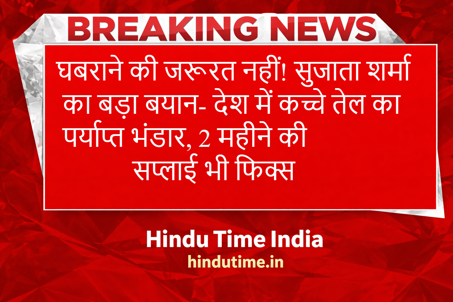 घबराने की जरूरत नहीं! सुजाता शर्मा का बड़ा बयान- देश में कच्चे तेल का पर्याप्त भंडार, 2 महीने की सप्लाई भी फिक्स